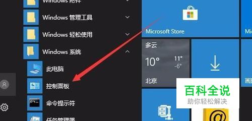 在Windows10系统桌面,依次点击桌面左下角的“开始/Windows系统/控制面板”菜单项。