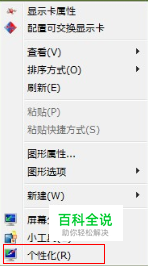 在电脑主界面空白处点击鼠标右键弹出配置窗口,点击最下方的个性化(R)按钮。