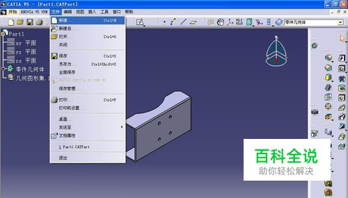 首先我们打开CATIA软件,并打开我们要转化为二维工程图的3D模型,并在菜单栏中单击文件>新建命令;