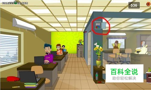 拿到第二个桌子上的口香糖与右边桌子上的线绳,点击女上司桌子上的书。