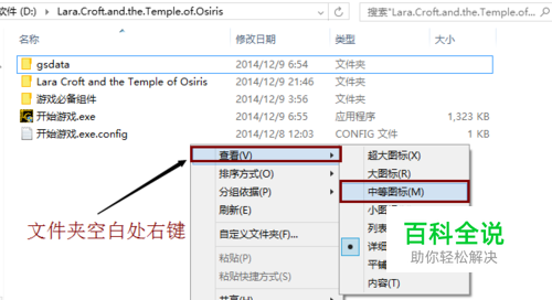 首先打开一个含有文件的文件夹。然后在桌面空白处单击右键选择查看再选择自己喜欢的文件夹视图(本经验作者喜欢中等图标)。