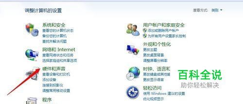 如上面的截图所示,点击"硬件和声音",进入相应的设置页面,如下图所示,看截图里的红色箭头,点击“电源选项”,进入“电源设置”的页面,
