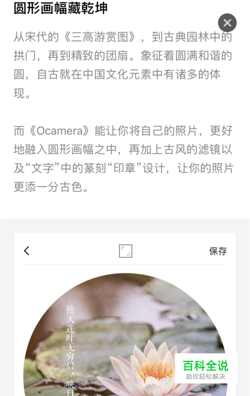 最近找到一个拍圆形照片的软件,还蛮好玩的。自己尝试了一下,有一丢丢的与众不同。这个软件就是ocamera,下面我就来给大家介绍一下我的,希望能帮到大家。