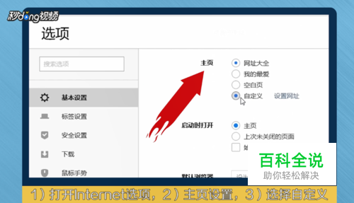 选择“自定义”,将多个主页删除,保留一个即可。