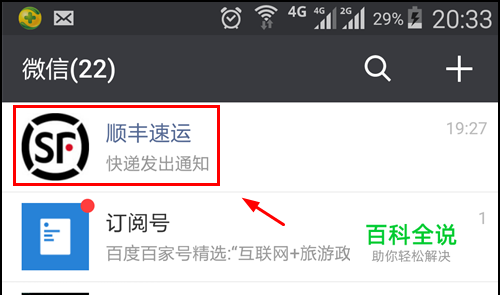打开微信后,找到顺丰速运的公众号,点击进入,如图所示
