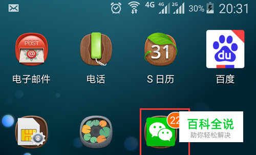 首先,在手机上打开微信,如图所示