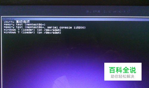 首先开机或者重启,在启动项选择菜单处记住win7对应的序号,从上至下的序号从0开始计数,我的win7系统选项处于第5个,那么序号就应该是4,记住后,打开ubuntu系统。