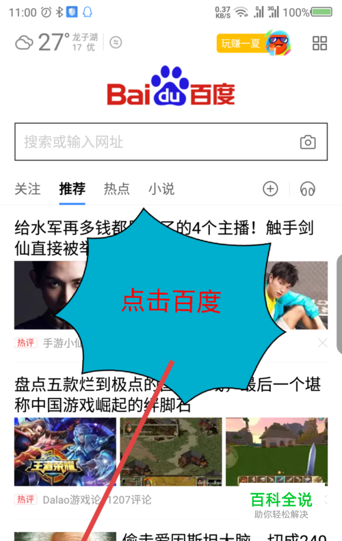 打开百度软件,点击底部最左边的百度选项。操作如截图所示