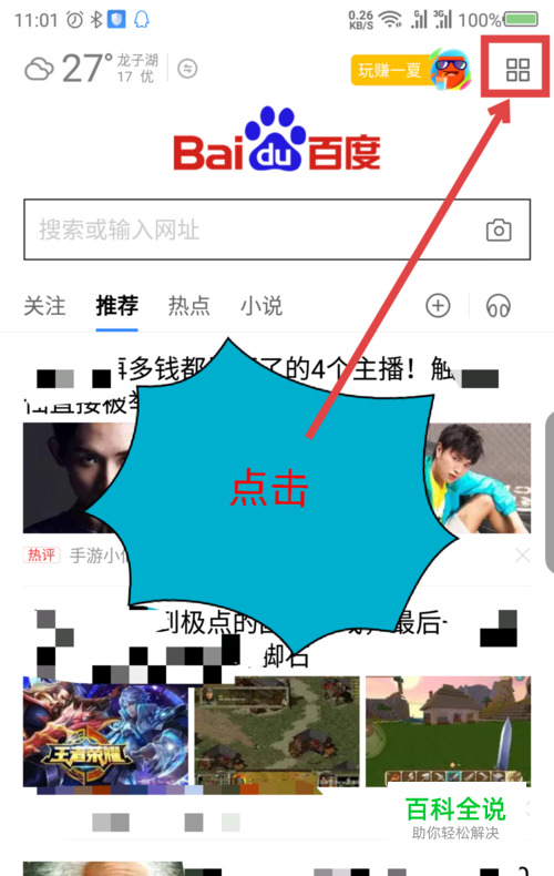 然后在百度页面,点击顶部右上角的四个口图标。操作如截图所示