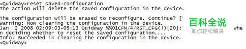 此时配置已经清空,现在进行重启操作。输入reboot,并在接下来的第一个询问中选择“N”,第二个询问中选择“Y”。如图所示。