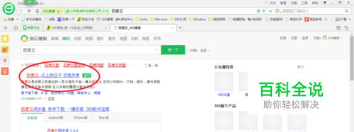 找到“百度云”官网,如图所示,打开百度云官网。一般百度云的官网都是第一个,但是有时候可能会排在第二或者第三,这个需要我们自己去看哦。