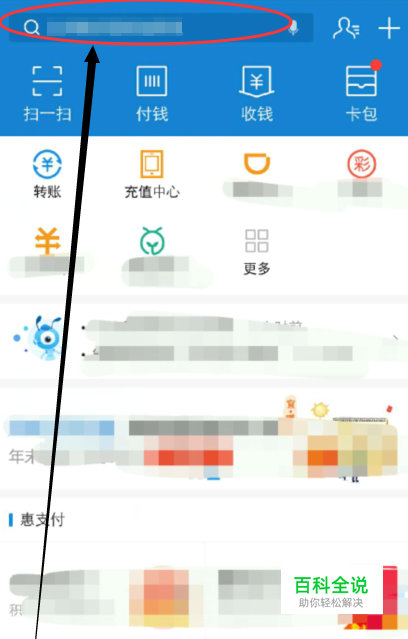 打开支付宝,选择首页,点击搜索框。