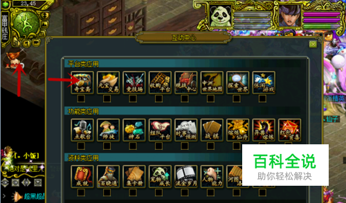 买游戏币。单击“互动中心”,单击在第一排“平台类应用”第一个“奇宝斋”进入下一界面。