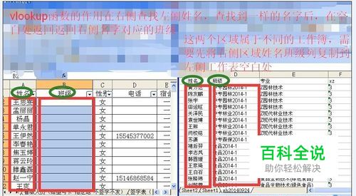 这两个区域属于不同的工作簿,需要先将右侧区域姓名班级列复制到左侧工作表空白处