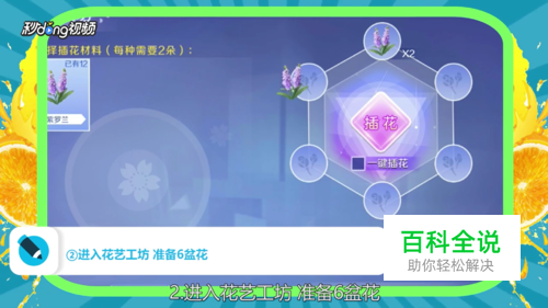进入花艺工坊,准备好6盆花。