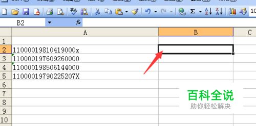 进行打开一个有身份证的excel表格的文件中,进行选中当前的身份证另外单元格中。