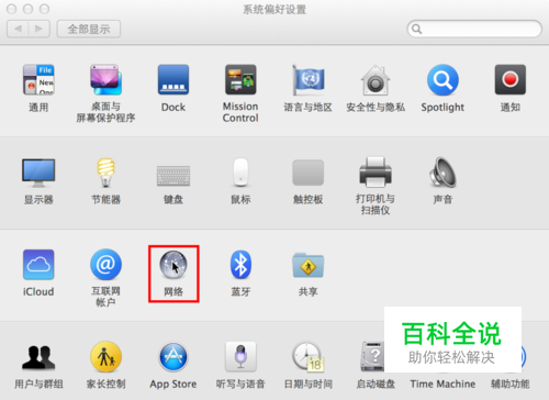 点击Dock上的系统偏好设置或者点击Apple菜单的系统偏好设置,然后点击网络;