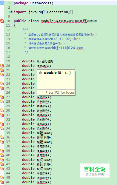 导入完成后,会发现源文件中的中文都变成了乱码,如下图所示。这是因为该工程的编码方式与eclipse中设置的编码方式不同。