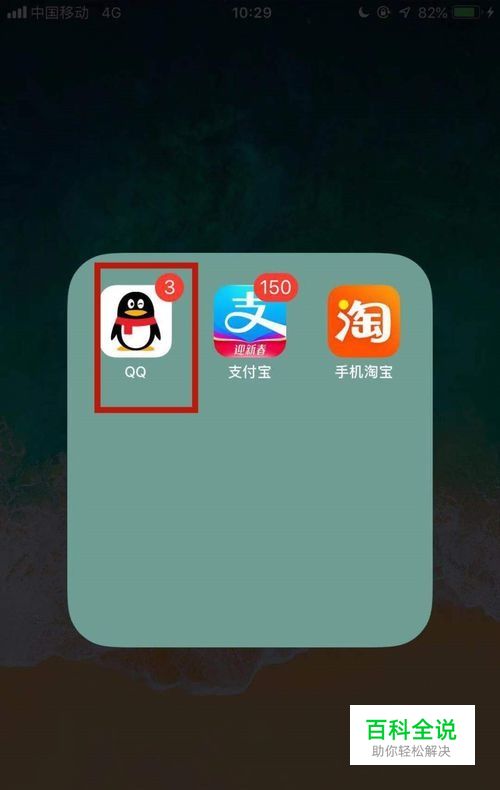 如图所示,首先在我们的手机桌面上找到qq并点击它。