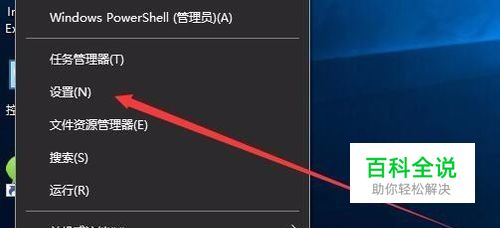 在Windows10系统桌面,右键点击左下角的开始按钮,在弹出的菜单中选择“设置”菜单项