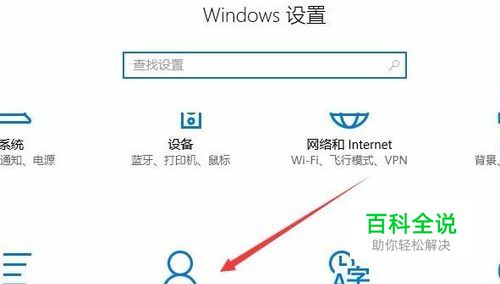 在打开的Windows设置窗口中,我们点击账户图标,打开账户设置窗口
