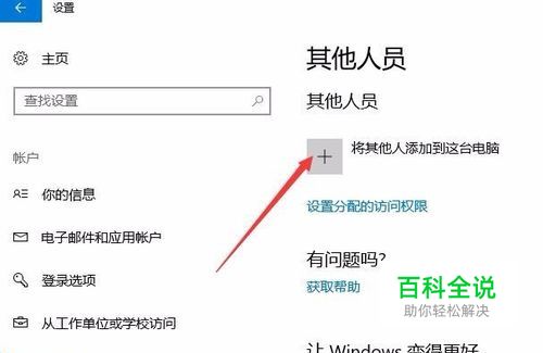 在打开的设置窗口中,我们点击左侧边栏的“其它人员”菜单项,然后在右侧窗口中点击“将其他人添加到这台电脑”快捷链接。