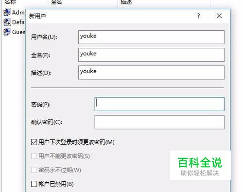 在打开的新用户窗口中,输入用户名与密码,最后点击“创建”按钮,就可以创建一个新账户了。