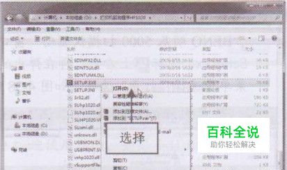 打开“打印机驱动程序HP 1020”文件夹, 找到SETUP.EXE文件图标后右击,在弹出的快捷菜单中选择“打开”选项。