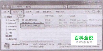 Windows XP模式实际上就是Windows Virtual PC虚拟机。要打开这个Windows XP虚拟机,只需单击“开始”按钮,在弹出的菜单中选择“所有程序”—“Windows Virtual PC”—“Windows Virtual PC”选项,即可打开虚拟机文件夹,其中包含所有虚拟机的快捷方式,包括Windows XP Mode。在该文件夹中选中“Windows XP Mode”选项,然后单击工具栏中的“打开”按钮,如图1所示。