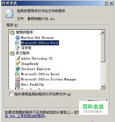 默认情况下,两个版本生成文件的后缀名不同,2007采用了新的文件名格式(当然也可以设置为兼容格式),如:2007的Excel文件后缀名是.xlsx,而2003的word文件名后缀是.xls;2007的word文件后缀名是.docx,而2003的word文件名后缀是.doc 如果想把后缀名为.doc的文件用2003默认打开,可以这样操作: 右键单击后缀名.doc的文件,打开方式→选择程序,在打开方式对话框,选择Word 2003程序,然后将“始终使用这种方式打开文件”选中,最后点击确定就可以了。对于.xls文件也是这样操作一次就可以了。见上图