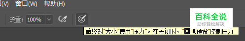 (这里以Photoshop CC 2017为例) 首先检查这个“始终对‘大小’使用‘压力’”按钮是否打开,如果是关闭的,试着打开。
