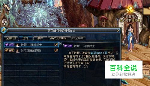 通关幽冥监狱下层后,到NPC塔娜处交任务,就可以完成转职任务,转职成为女鬼剑新职业流浪武士了。