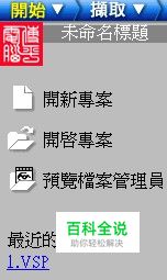 开始 当你在功能菜单上选择开始选项的时候,功能操作区即出现相关的选项命令。我们从图二中可以看到这些命令,“开新文件”、“开启文件”、“预览文件管理员”。 注意这里打开各种文件是指的会声会影处理文件,即VSP格式的文件,只能用视频处理打开。不是建立视频文件,要注意区分。如果是新建文件,则会弹出一个对话框询问具体建立哪种文件,如图三 在这个对话框中,“工作资料文件夹”是指进行视频文件编辑的时候,所以需要的一些文件都要放在这个文件夹中。例如我们有一个视频文件,在处理的时候把它剪辑成了多个视频片断,这些片断文件都是摆放在工作资料文件夹指定的地方。在“选择一个范本”的选项下,实际是选择一个视频文件的模版,选哪一个模板与最后想作成什么格式的文件有关。例如:你想将所有的截取的VCD片段也做成一张精彩集锦VCD的话,那么你可以选择NTSC或PAL的VCD模板。