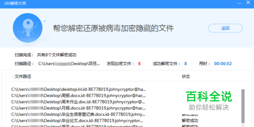 点击“立即扫描”,自动识别被勒索病毒加密的文件,一键解密恢复。
