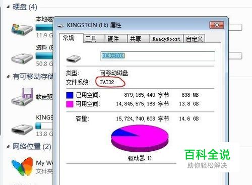 2、确认我们的U盘是否是FAT32格式的。 (1)、在U盘右击选择属性。 (2)、可以看到是什么格式。 如果不是,需要我们重新对U盘进行格式化,格式化的时候选择是FAT32格式。 需要注意的是:在格式化U盘前我们需要把里面的资料备份一下。