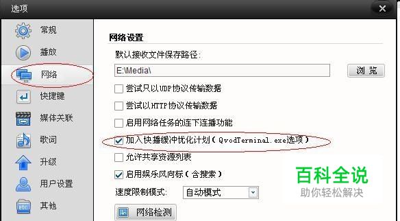 然后在网络选项中勾选“加入快播缓冲计划”如下图: