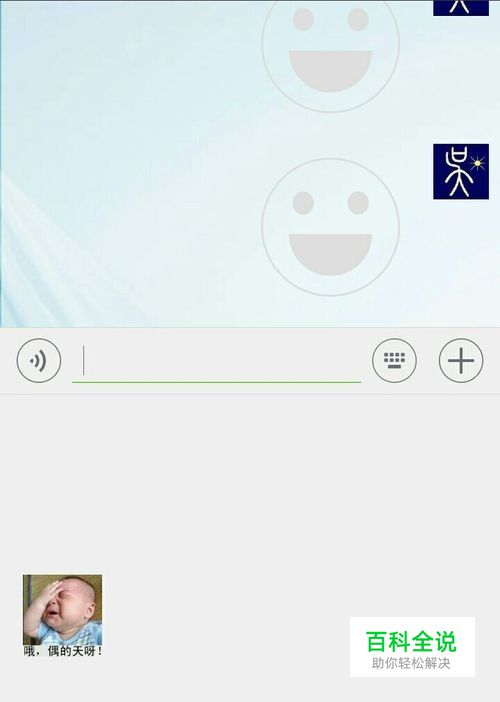 4、接下来点击左上角的左箭头,退出表情查看,返回信息发送界面,我们看到刚才发送的表情已经能够显示出来了,如下图,但收藏表情(即原来方框4处)仍未显示。
