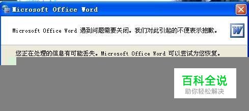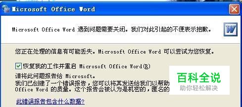 word突然不能正常启动,并有提示框:(遇到问题需要关闭,并提示尝试恢复。) 但恢复后立即出现提示:(WORD上次启动时失败,以安全模式启动WORD将帮助您纠正或发现启动中的问题,以便下一次启动应用程序。但这种模式下,一些功能将被禁用)。确认后可启动WORD,但标题后有安全模式字样。