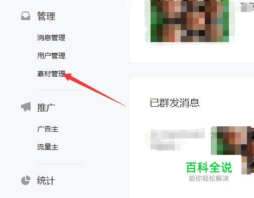 接着点击素材管理,点击左侧的素材管理,写好的文章就是放在这里的,直接点击即可。