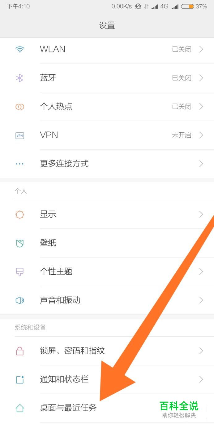 然后点击进入“桌面与最近任务”设置选项。
