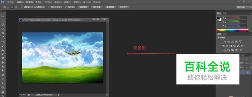 打开ps,我这里用的是CS6的版本,这个是比较新的一个版本,现在大家比较常用的。先打开一张我们需要作为背景的图片,挤最主要的图片。如图所示,我这里打开了一张风景图,很简的单蓝天白云。