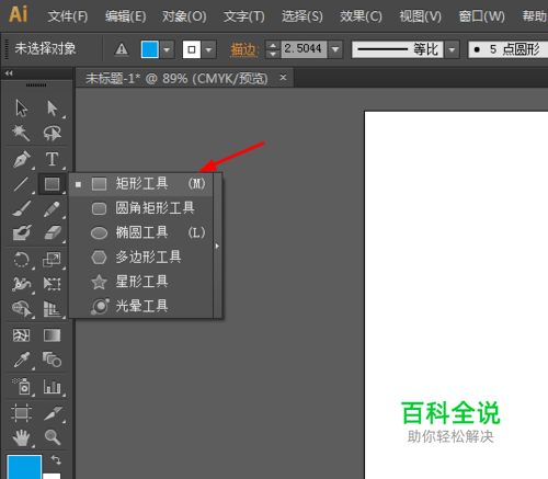 然后我们打开AI软件的界面,选择矩形工具,画一个任意的图形,如图所示