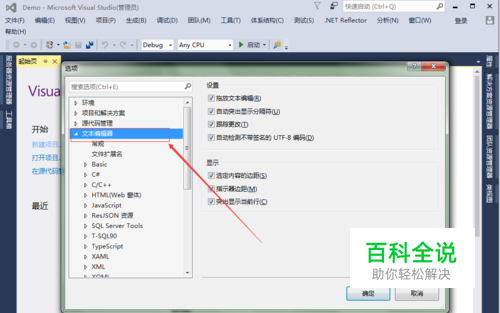 在选项对话框中,选择右侧菜单里的【文本编辑】