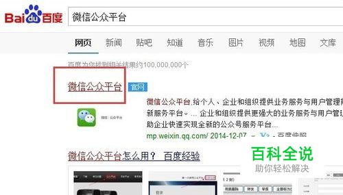搜索“微信公众平台”,点击进入。