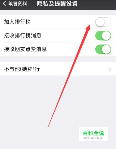 进入隐私及提醒页面后,即可看到加入排行榜入口,如需加入点击后方的按键即可加入。