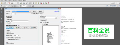 打开文档,选择“文件”-“打印”。自定义比例为当前比例57.1%,打印机为adobe pdf。