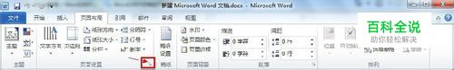 在页面设置功能区中单击旁边的小三角形按钮