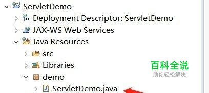 然后创建一个web工程项目,并在src下创建类ServletDemo。创建后的工程目录如图。
