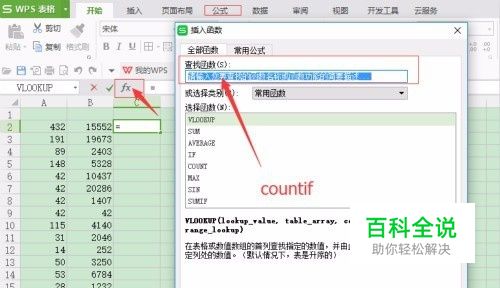 在公式中或者找到Fx点开,在搜索框中找到countif点击开。