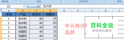连续单元格区域选取方式比较多,先说一种方式就是结合shift键,先选中一个单元格,按住shift键,在按住一个单元格,那么这两个单元格之间的区域就全部选中了。